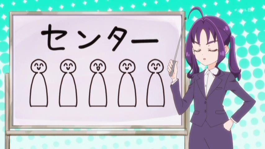 キュアアイドルは何処に居ても目立つし、太陽の様に輝いてるからセンターに居てほしい。